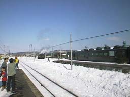 この後は、初日と同じようにダイヤと地図を見ながら撮影場所探し。雪も寒さにもすっかり慣れてしまったのですが、撮影場所で足場を作るとき、周囲の雪をさくさくとよけながらの作業では足の先がすっかり冷たくなってしまうほど寒かった。雪もじめじめしていない、さらっとした感触になっているあたり、内地とはずいぶんと違うのだなと思ったものです。