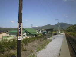 ホームを見てみます。夏なので雰囲気はちょっと違いますが、、、駅名標と列車用のバックミラーは現在の駅としてのもの。 |