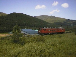 | 十分幾寅駅を堪能した後に、帯広方面へと先に進んだのですが、途中の線路沿いで「ぽっぽや号」と出会いました。。 なんと悪いタイミング! もうちょっと待っていれば良かったんだけどなぁ・・・ |