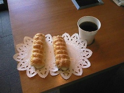 これが「サクサクパイ」。1個\100+税。見た目よりもかたくて歯ごたえがあり、文字通り「さくさく」でした。 |