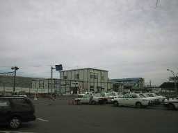 ![]() 駅舎はプレハブの仮駅舎でした。左側に小さい店があったほか、駅の中はほとんどむかしの駅舎と同じレイアウトのままでした。 |