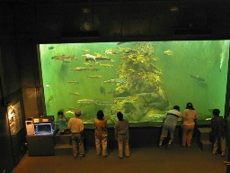 中には鮭や鱒を中心の近くの川や海で捕ってきた魚を大きな水槽に入れて展示してあります。中には国内最大の淡水魚である「イトウ」の姿も。 | |