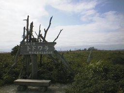 とにかく周辺は真っ平らで広い平面が広がっていました。 半島の幅は狭く、一本道をずっと奥に行ったところに休憩所があり、その付近に碑があります。 |