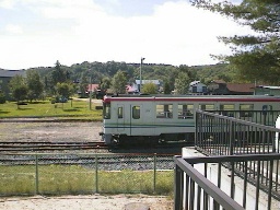 途中道の駅で休んでから(ここでスタンプラリーに応募。今年は14カ所でした)、西の日高地方に抜けます。海岸線ではないので馬の牧場はあまり見られなかったのですが、途中の振内町では、左写真のような廃線跡を使った鉄道展示館がありました。 昔の蒸気機関車と客車が置いてあるのは他と同じなのですが、客車は簡易宿泊施設でシャワーまで付いている本格的なもの。 |
