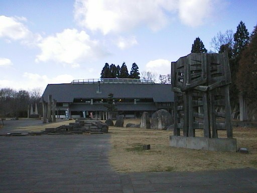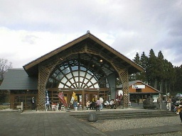 | 奧に工芸館(上の写真)があり、その途中には石や木で作られた芸術作品、石舞台などがあります。工芸館では那須地方の陶器や木工芸品などの販売や製作の実演、体験コーナーもあります。 手前には自然観光館(右の写真)、ふるさと物産センターがあり、地元の農産物の販売や喫茶店などがあります。 周囲は栃木県北のリゾート地らしく、あちこちにペンションやレストランなどが点在。しかしこの周辺は地元の人がよく集まり、賑わっているところです。 |