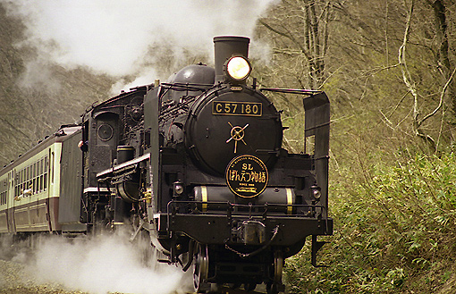 写真は4月バージョンで、文字の形や絵柄は前年間のでのものと同じ。これをSLの車体と同じく黒と金色の2色のみで塗り替えており、遠くから目立ちませんが、写真に撮ると引き締まった印象を受けます。