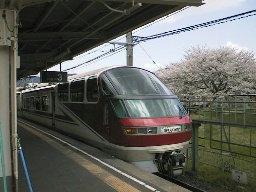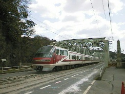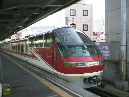 「パノラマSuper」と呼ばれる、現在の特急車両。正面は客室を上にあげて前方の眺めをよくしている特徴ある形をしています。 |