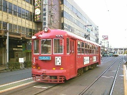 岐阜市内線を走る路面電車。 この路線は忠節までは市街地を走っているのですが、電停が道路に色を塗っただけだったのもあって、なかなかよく分からない(^^;。乗客が乗りやすいように低いステップが付いています。 |