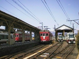 ここは岐阜方面から来た電車と、ローカル区間である揖斐線揖斐方面と谷汲線との接続駅。写真では見えませんが「丸窓車」550系?が奥の方に留置されていました。