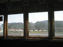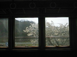 750系車両に乗り込んで撮影した外の景色。 根尾川沿いに桜の花が美しく、ロングシートの向かいからじっくり見ることができました。 |