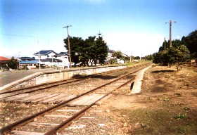 この路線の終点で、駅周辺は草は刈り取られているものの駅名標が外されベンチのみが残されていました。周囲は車庫などがあるものの列車の姿はなく、すっかり寂しい場所となっていました。