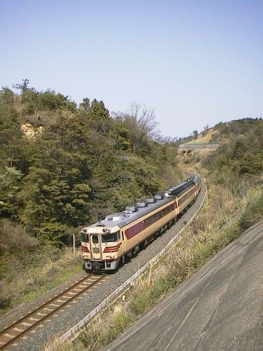 ドライブインの裏手から撮った「いそかぜ」。いい天気だったので空を広くして撮ったらすっきりとした形になりました。