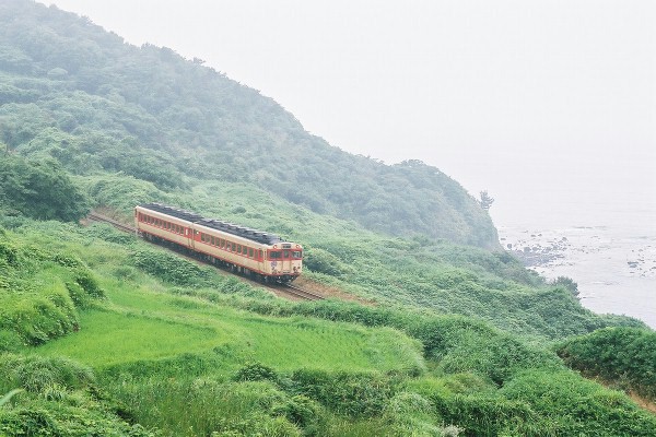 以前の時とは逆に、午前中に訪問して撮った「石見ライナー」。背景や棚田とのバランスを合わせてちょうどいい位置で撮ることができました。背景がややかすんでいるのもいい感じ。