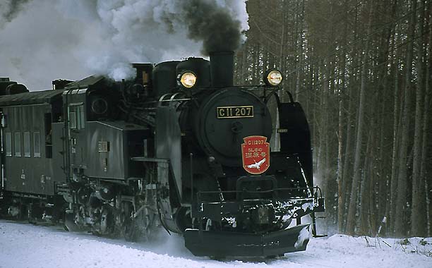 摩周〜川湯温泉間は延々と林の続く道。大きな撮影ポイントはないのですが、うっそうと繁る木々の間を走る機関車は それだけでも北海道らしい景色と言えるのでしょうか。
