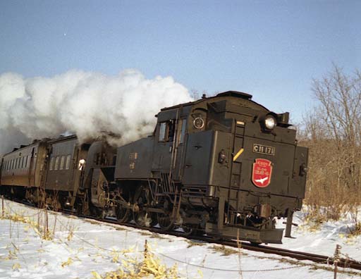 冬の間は雪に閉ざされていて閉鎖してしまう道路もあったのですが、この撮影地は用水路の近くにあったことから冬の間でも車が通れるようになっていました。SL列車は途中停車時間が長いので、同じ列車をいろいろなところから撮ることができます。