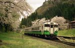 福島県西部の会津若松から会津坂下、会津川口、只見などを通り、上越線の小出までの路線。只見川沿いの山間深くを通るため沿線客は非常に少なく、その代わりに川と山を中心にした大自然の景色がすばらしいところ。山間であるため高地では雪が深く、沿線の道路は4月末まで雪で通れない場所もあり、桜の咲く時期も周辺より大きく遅れています。今回訪問したときはちょうど桜の咲き頃と合っていたため、桜の木のあるところを中心に回ってみました。