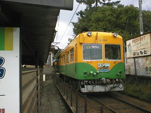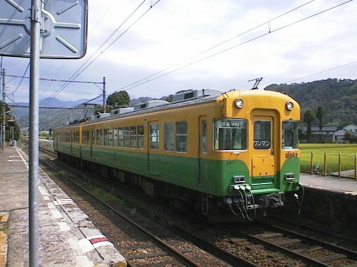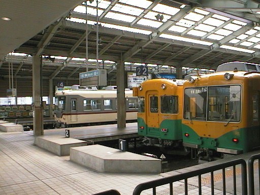 元京阪の3000系。車内は転換クロスシートをそのまま使用し、ワンマン設備を追加したもの。 台車は営団3000系のものを流用しています。 写真はローカル区間の普通列車のもの