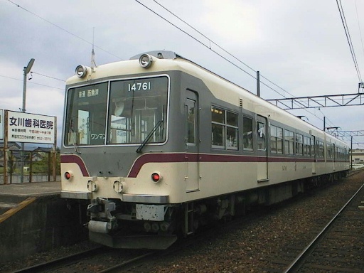 ![]() 電鉄富山駅の様子 手前には14760系の新塗装車、奧には同じ車両の旧塗装車があります。 |
