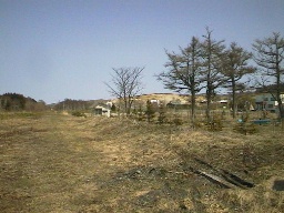 | (恵北駅周辺) 線路の跡がまっすぐに伸びており、ここが廃線跡だというのは容易に分かります。ただし恵北駅跡はほとんど残っておらず、探すのに苦労しました。 |