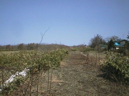 | (恵北駅) 道が路線跡と交差するところからやや北(稚内より)の、畑というか荒れ地の中。ホームらしき盛り土があるのみで、あとは背の高い草が茂っていました。 |