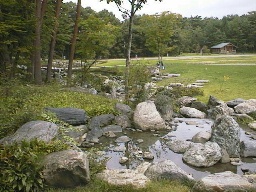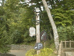(花壇への入り口) 先ほどのイーハトーブ館や花壇へ行く道には、ごらんのような立て看板があり、直筆(のコピー)で「下ノ畑ニ居マス 賢治」と書かれています。 | |