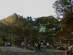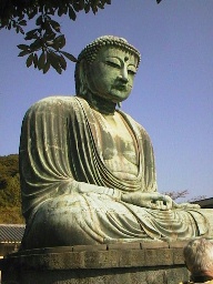 (鎌倉大仏) もともとは高徳院という寺院にあるもので、木造だったものを十三世紀に現在の金銅仏としたもの。 大仏殿は津波や洪水などで流されてしまい、奈良のものと違って外に座っている大仏様です。 天気が良かったせいか、この写真もなかなか見栄えがいいでしょう(^^; こちらの方は外人客も多く訪れており、また違う雰囲気でした。 バスでこちらに来る場合は、鎌倉駅前から「大仏前」バス停で降りてすぐです。 | |
