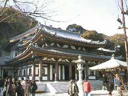 (長谷寺) 江ノ電の長谷駅から鎌倉大仏まで歩く途中に左折するとあります。 8世紀にはすで開かれていたらしく歴史のある寺で、写真右の観音堂奧に十一面観音が置かれています。 |