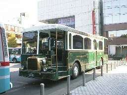 (路線バス「りんどう号」) 鎌倉駅を中心に、鎌倉宮(大塔宮)方面と鎌倉大仏方面に向かう路線バス。一見すると江ノ電のレトロ電車にも似た形ですが、所有しているのは江ノ電バスではなく京浜急行バスの方。 | |