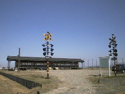 (保存車両と・・・?) 今泉〜村松間の空き地にできた、車両保存のための広場とでも言いましょうか。踏切の警報機(どこか変・・・・)と、奥の方には保存車両。隣にはなぜかATSの地上設備用の部品が置かれていました。 | |