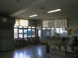 (村松駅舎の中) 現在の様子ですが、鉄道の駅のころからほとんど変化がありません。自動券売機がなくなったことと、旧改札口上の時刻表が電車からバスに代わったのみ。 出札口だったところはバスの定期券売所としてそのまま利用されていました。 | |
