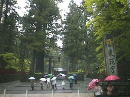 |  | (表参道) 二社一寺があるのはいわゆる「日光山」と呼ばれる広い敷地の中で、入り口は分かりづらいのですが、いくつかの駐車場からこの表参道に入ることができます。 日光に向かう街道は多くの杉が植えられ「日光杉並木」として整備されました。現在でもこの姿は残っており、表参道でもその姿は変わっていません。 | |