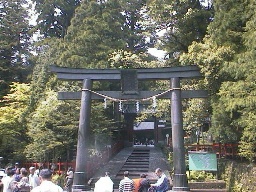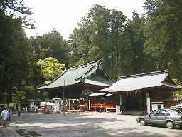 (二荒山神社 神門) 表参道から東照宮に入らず、左側にある下新道を通った場合はこの門から上写真の拝殿に行くことになります。 坂の途中には縁結びの木なる物があり、私もここで願を掛けてきました(^^;。 | |