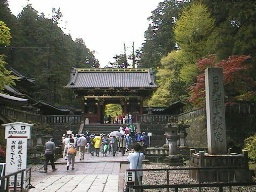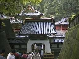 | (輪王寺大猷院) 下新道をさらに奧に行くと、大猷院(だいゆういん)の入り口である仁王門に着きます。ここは徳川家光の墓所があるところで、東照宮よりも地味な作り(?)となっています。 |