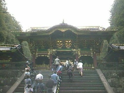 | (皇嘉門) その形から「竜宮門」と呼ばれ、今年家光公没後350周年を記念して、今回公開されました。上の写真の唐門をくぐり、右側を通っていくとあるところで、この門の先(奧院)に宝蔵と奧院宝塔(家光公のお墓です)があります。 今年の公開が終わると、次回は50年後まで入ることはできないらしいです。 |