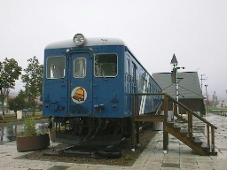 | (中頓別駅) 周辺はそこそこ大きな町で、バスターミナルになっていました。 駅舎は建て替えられ、天北線当時のものを展示するコーナーも あったのですが、中に入ることはできず。 隣には写真のキハ22と腕木式信号機が置いてあります。 (車内に入ることは不可) |