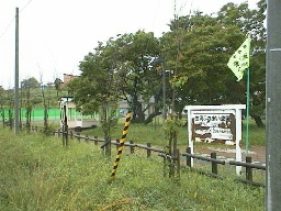(曲渕駅) 駅舎、ホームはなく、その辺りは道路になっています。 駅前は写真の「まがりふちふれあい公園」になっていて、 駅名標に似た看板があります。 | |