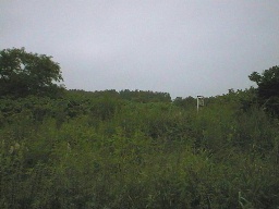 | (沼川駅周辺) ちょうどここを訪れたときは7月終わりで緑深く、駅跡の周辺はごらんの通り草が生い茂っていました。(馬もいた・・・(^^;) ホームがあるのかまでははっきり分からない状態。上の写真の駅名標がどこにあるのか分かりますか? 草がないときの写真はこちら。 |