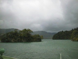 御倉半島を過ぎてからは東湖に入ります。湾の奥の方には宇樽部(うたるべ)という小さな集落があり、そこが終点です。 実際は写真左の方にある、奥入瀬渓流の入り口に近い 子の口(ねのくち)の方が終点になっています。 | |