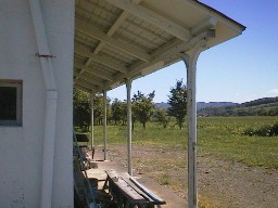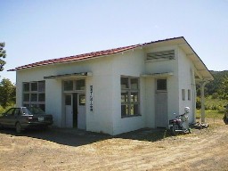 |  | (知来駅) 駅舎はゲートボール場の控え室になっていました。ホームは残っていませんが、屋根の柱がレールで作られていて、かつて駅だったことを示しています。 |  |