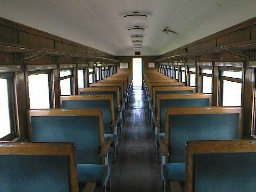 | (計呂地にある客車) こちらも卯原内と同じように簡易宿泊施設になっていて、近くにシャワーや洗面用の水道設備もあります。 2両ある客車は車号が不明。1両は座敷なのですが、もう1両は写真のように当時の座席がまだ残っていました。 |  | |